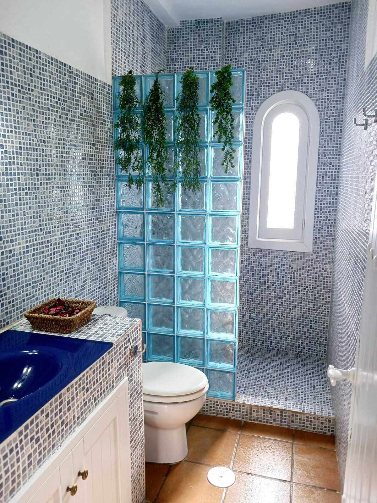 Cuarto auxiliar con lavadora y ducha, ideal para días de playa o como zona de lavandería independiente.