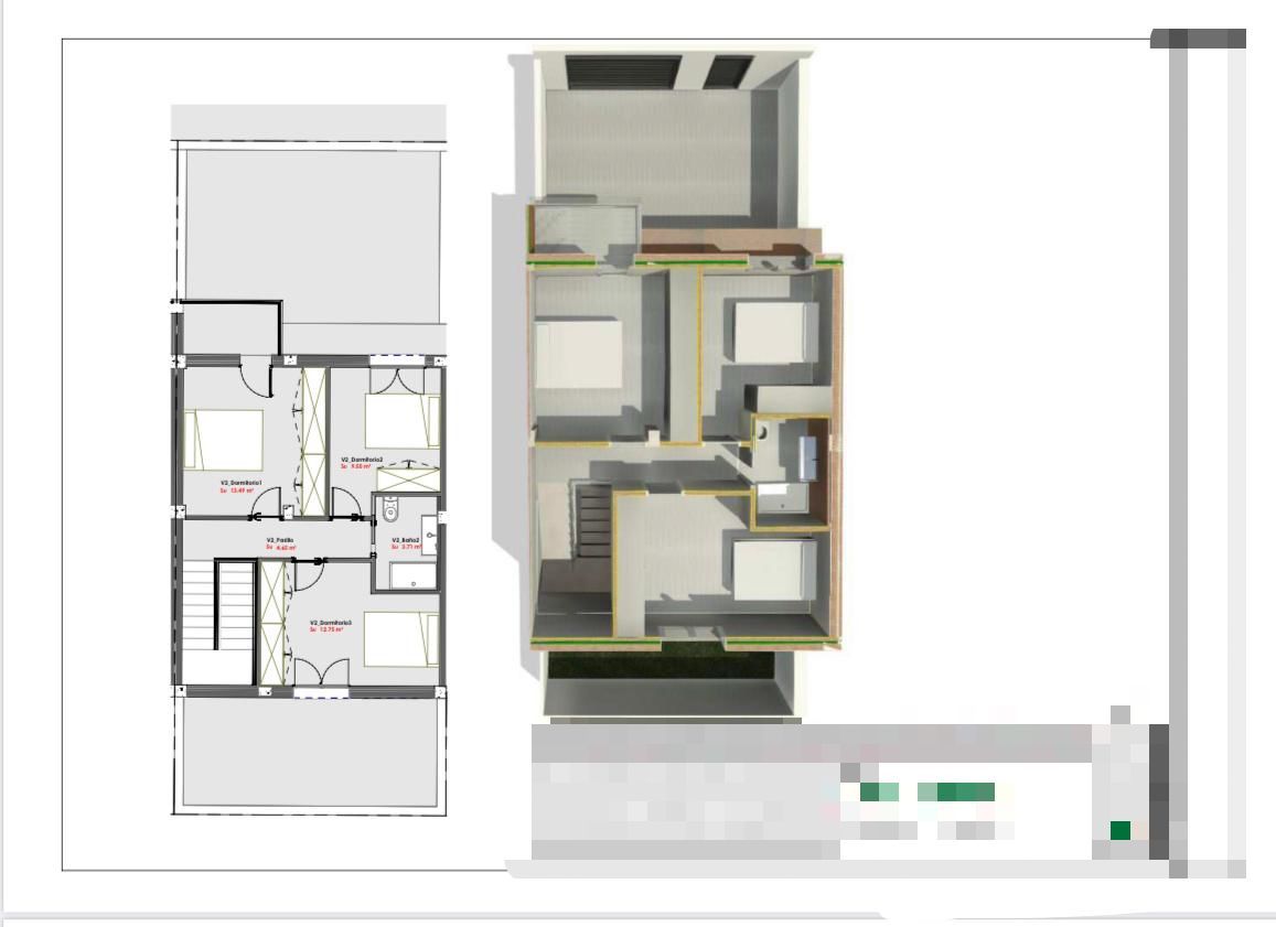 La segunda planta dispone de tres dormitorios, perfectos como habitaciones, despacho o zona de invitados, y un baño completo, garantizando comodidad para toda la familia.