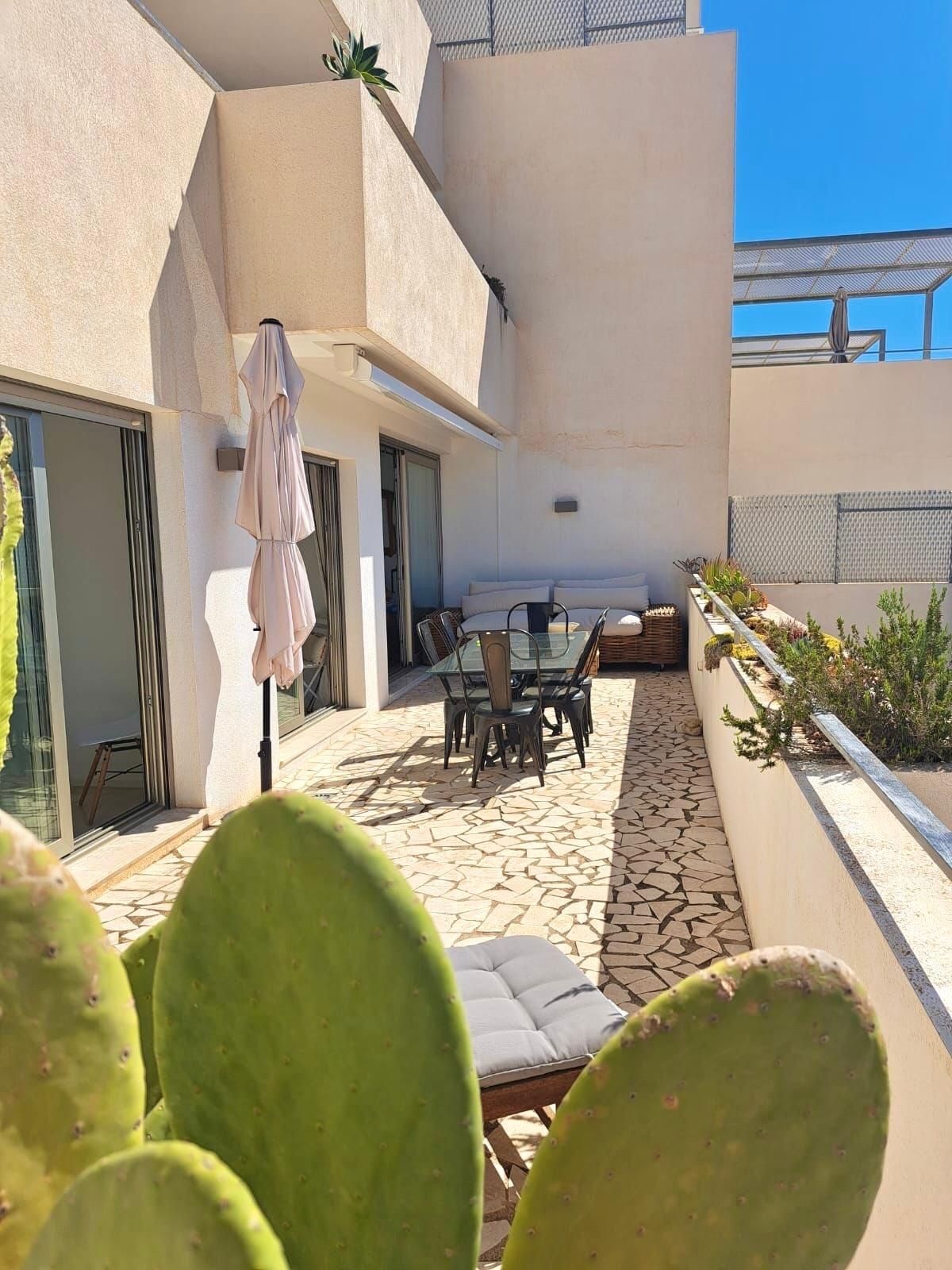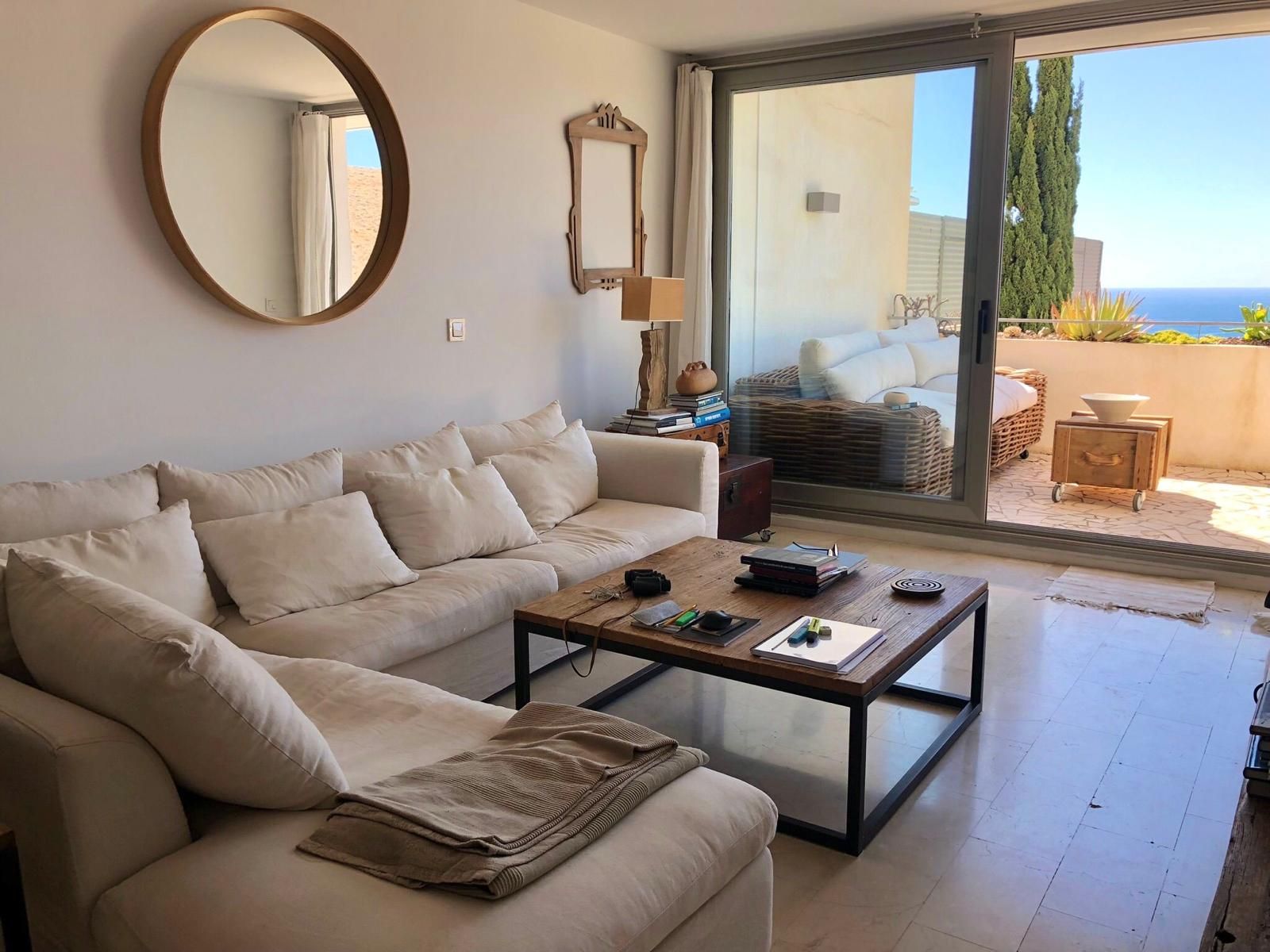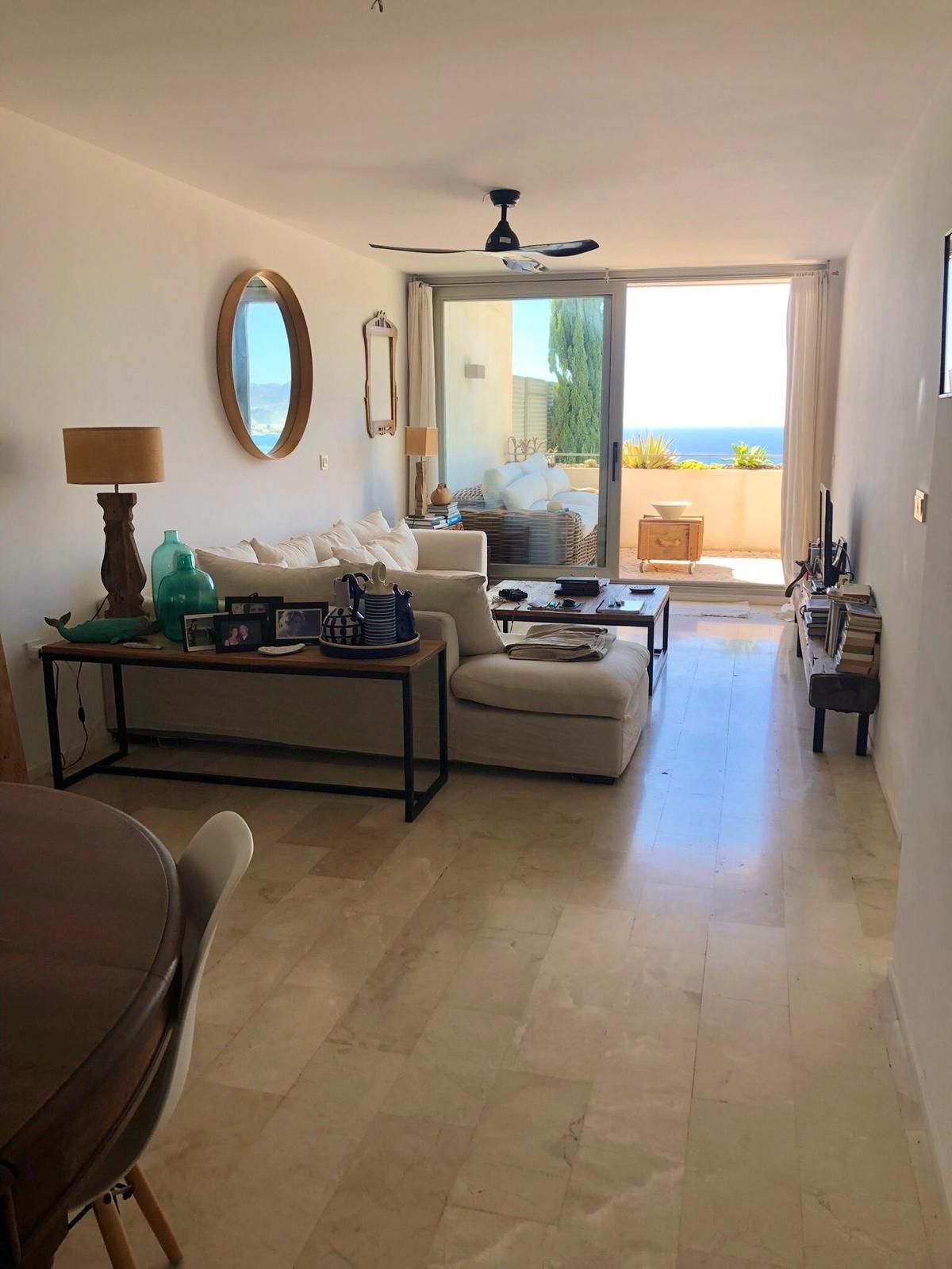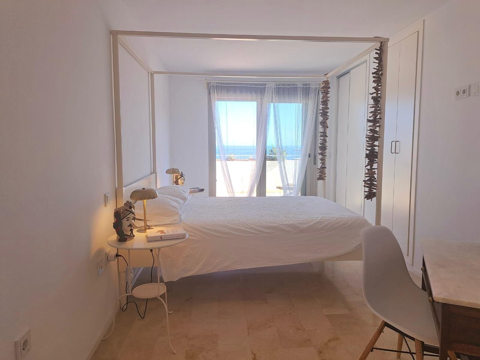La vivienda cuenta con 136 m² construidos, distribuidos en dos dormitorios con armarios empotrados y dos baños completos. Dispone de un salón-comedor muy espacioso y luminoso con acceso directo a una gran terraza privada con impresionantes vistas al mar, perfecta para relajarse o disfrutar de comidas al aire libre.